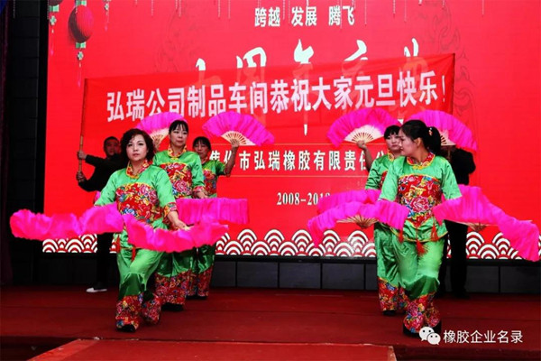 12月31日,焦作市弘瑞橡胶有限公司在焦作苏州园酒店举办隆重的十周年厂庆活动。车间集体舞蹈、才艺演唱、喜剧小品、老式的三句半欢声一片,员工们个个都以饱满的热情庆祝我们“弘瑞人”自己的节日。来自国内各地嘉宾、客户及供应商与厂员工300多人共聚一堂,欢庆这一盛典。