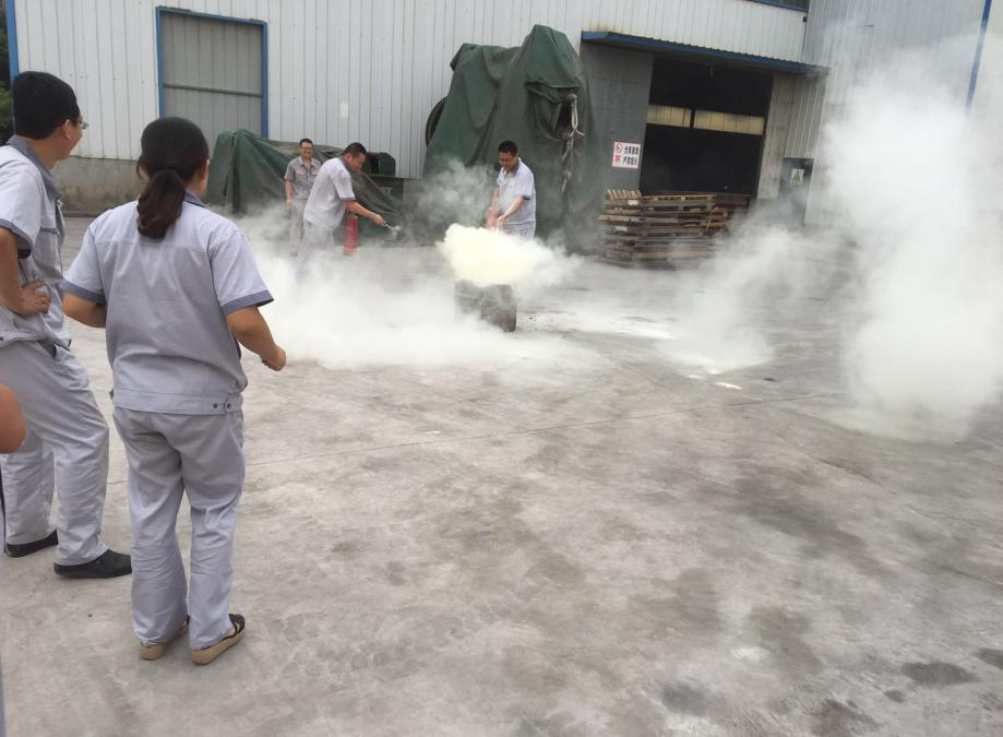 7月9号上午8时00分,天气晴好,风力不大,根据事先安排,由安全员大声喊,成品库房外有起火,快速施救,听到喊声,机关人员立即放下手中工作,跑到失火地方,按平时教育分工,用干粉灭火器灭火,员工按平时学习的使用方法,快速做到灭火,演练比较成功,队员仅用5分钟即赶到现场,10分钟演习结束。